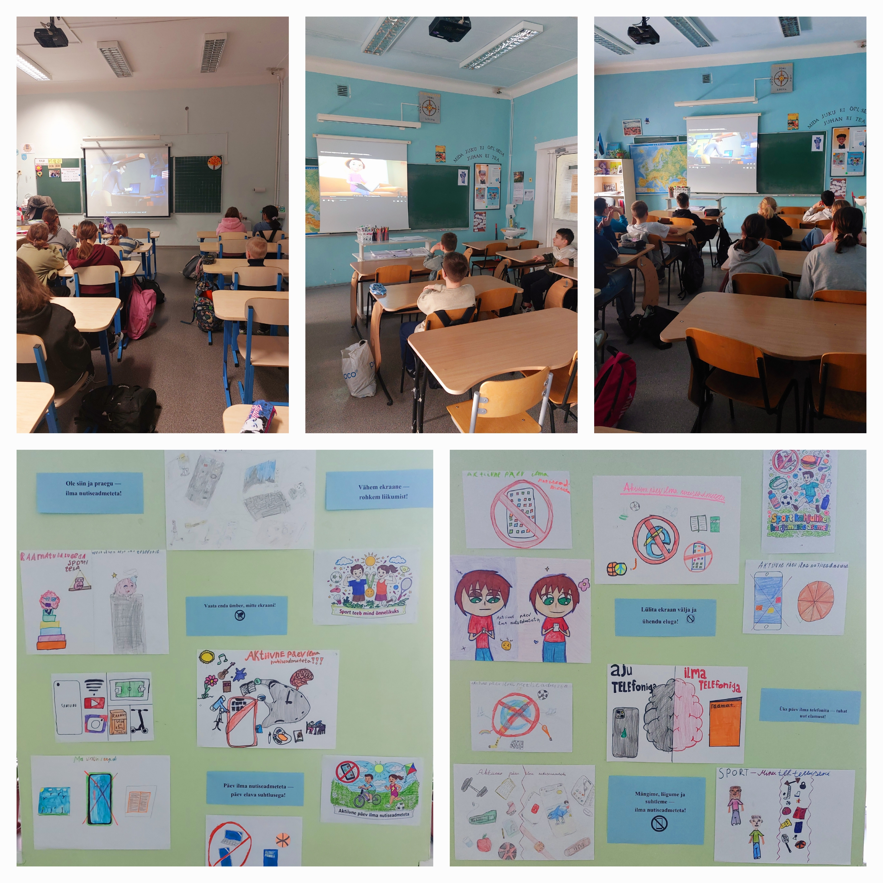 Programm „Tervis“Programm „Tervis“ Aktiivne päev ilma nutiseadmeteta Pärast talvevaheaega arutati koos õpilastega, kuidas nad oma vaba aega veetsid, ning otsustati pühendada jaanuar nutiseadmete kasutamise kasu ja kahju teemale. Alates 12. jaanuarist osalesid 3.a, 3.b, 4.b, 5.a ja 6.a klassi õpilased programmi „Tervis“ raames toimuvates huvitavates ja õpetlikes tundides. Tundide peamine eesmärk oli näidata lastele, et aktiivne eluviis, vahetu suhtlemine ja liikumine võivad olla huvitavad ja kasulikud ka ilma elektrooniliste seadmeteta. Tundide käigus arutasid õpilased järgmisi küsimusi: • Milliseid nutiseadmeid kasutad iga päev? • Kui palju aega veedad telefoni või tahvelarvutiga? • Kuidas tunned end pärast pikka aega ekraani ees viibimist? Seejärel vaadati harivat videomaterjali mobiiltelefonide liigse kasutamise kahjulikkusest ning arutleti ka videote ja fotode vaatamise mõju üle tähelepanule ja enesetundele. Tunni kokkuvõtteks täitsid õpilased loova ülesande – nad joonistasid pilte teemal „Aktiivne päev ilma nutiseadmeteta“, kujutades: • spordiga tegelemist; • mänge sõpradega; • looduses puhkamist; • õnnelikku päeva ilma telefonita. Seeläbi aitasid läbiviidud tunnid õpilastel mõelda sellele, millist rolli mängivad nutiseadmed nende elus, ning näha, et aktiivne eluviis, vahetu suhtlemine ja liikumine pakuvad vähemalt sama palju rõõmu kui ekraaniaeg. Õpilased arutasid teemat suure huviga, jagasid ideid ja proovisid uusi viise kasulikuks ning põnevaks vaba aja veetmiseks. Loodame, et saadud teadmised ja muljed saavad õpilaste jaoks heaks sammuks tervislike harjumuste kujundamisel ning teadlikuma suhtumise tekkimisel oma tervisesse. Aktiivne päev ilma nutiseadmeteta võib…