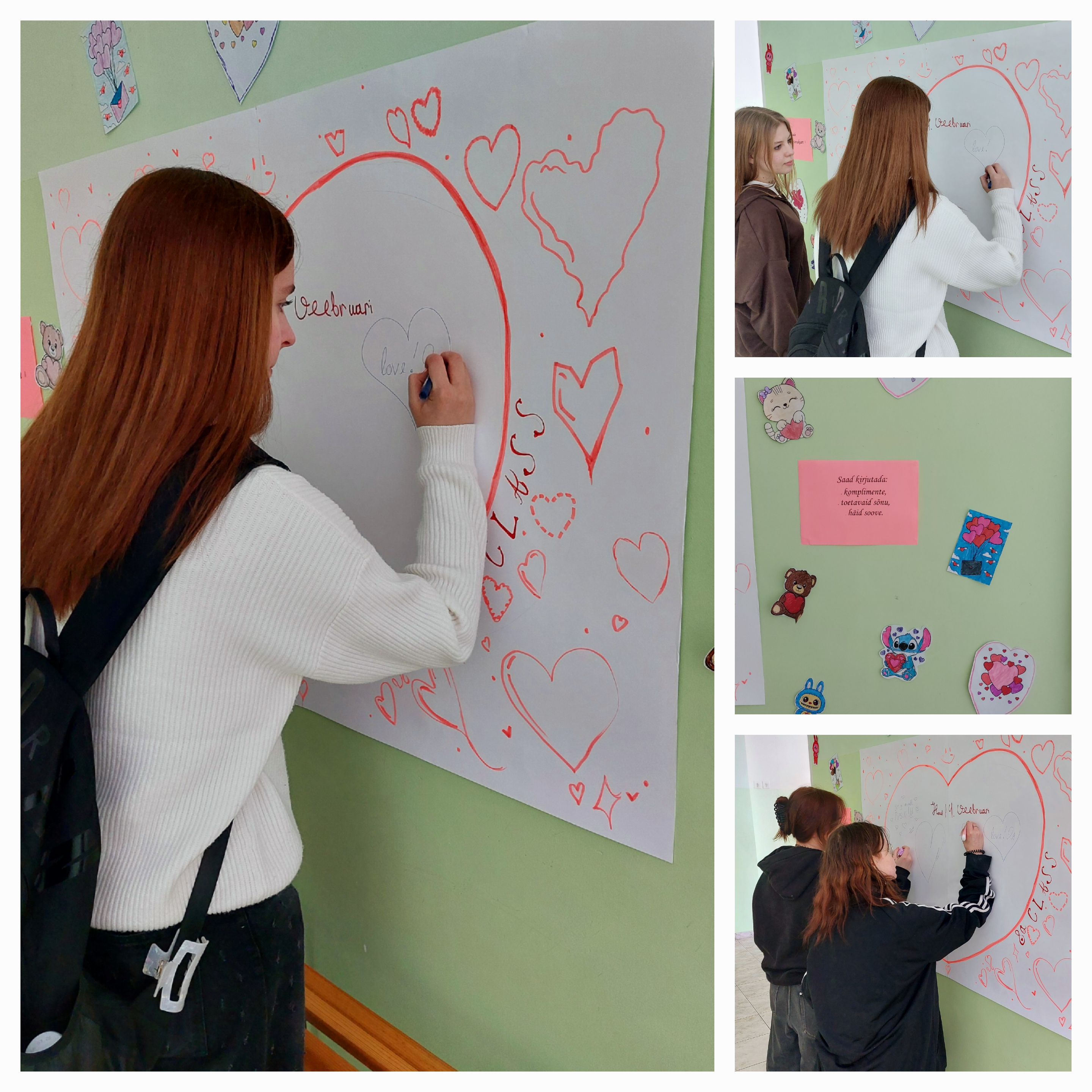 SõbrapäevSõbrapäev 13 veebruaril täitus kool erilise rõõmu, soojuse ja naeratuste atmosfääriga. Pidulik hommik algas meeldivate üllatustega: 9.a klassi õpilasesinduse meeskond tervitas õpilasi kooli sissepääsu juures, luues hea tuju kogu päevaks. Õpilastele jagati numbriga märke — tüdrukutele roosad ja poistele helerohelised. Kui paarid teineteist leidsid, ootas neid magus auhind. 6.a klassi õpilasesinduse meeskond toimetas rõõmuga adressaatideni piduliku posti — kirjad õnnitluste, heade sõnade ja siiraste soovidega. Iga soovija sai kirjutada komplimente, toetavaid mõtteid ja häid soove „Heade sõnade sõbrapäevakaardile“. Pühademeeleolu täiendas särav ja lõbus fotosessioon kooli fuajees. See möödus positiivses meeleolus, sest iga klass tuli sel päeval kooli oma eelnevalt valitud värvitoonis, mis muutis päeva veelgi värvikamaks, sõbralikumaks ja meeldejäävamaks. Kõiki ürituse fotosid saab vaadata meie fotogaleriis.